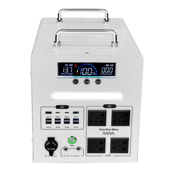 800W Portable Power Station – Pure Sine Wave, LiFePO4 Battery, 10×USB, Type-C, AC/DC/Cigarette Lighter Outputs, Metal Shell